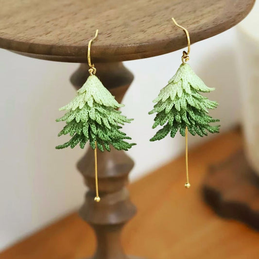 Micro Crochet Christmas Tree Earrings – Handmade Holiday Jewelry