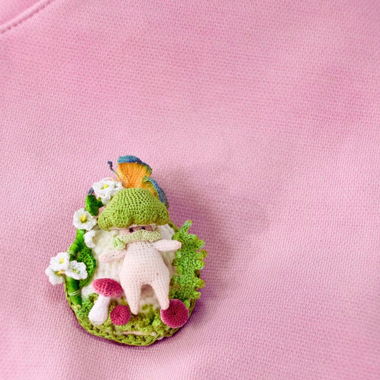 Micro Crochet Mushroom Sprite Brooch – Fairycore Woodland Pin