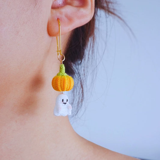 Pumpkin Spirit – Micro Crochet Pumpkin Ghost Earrings