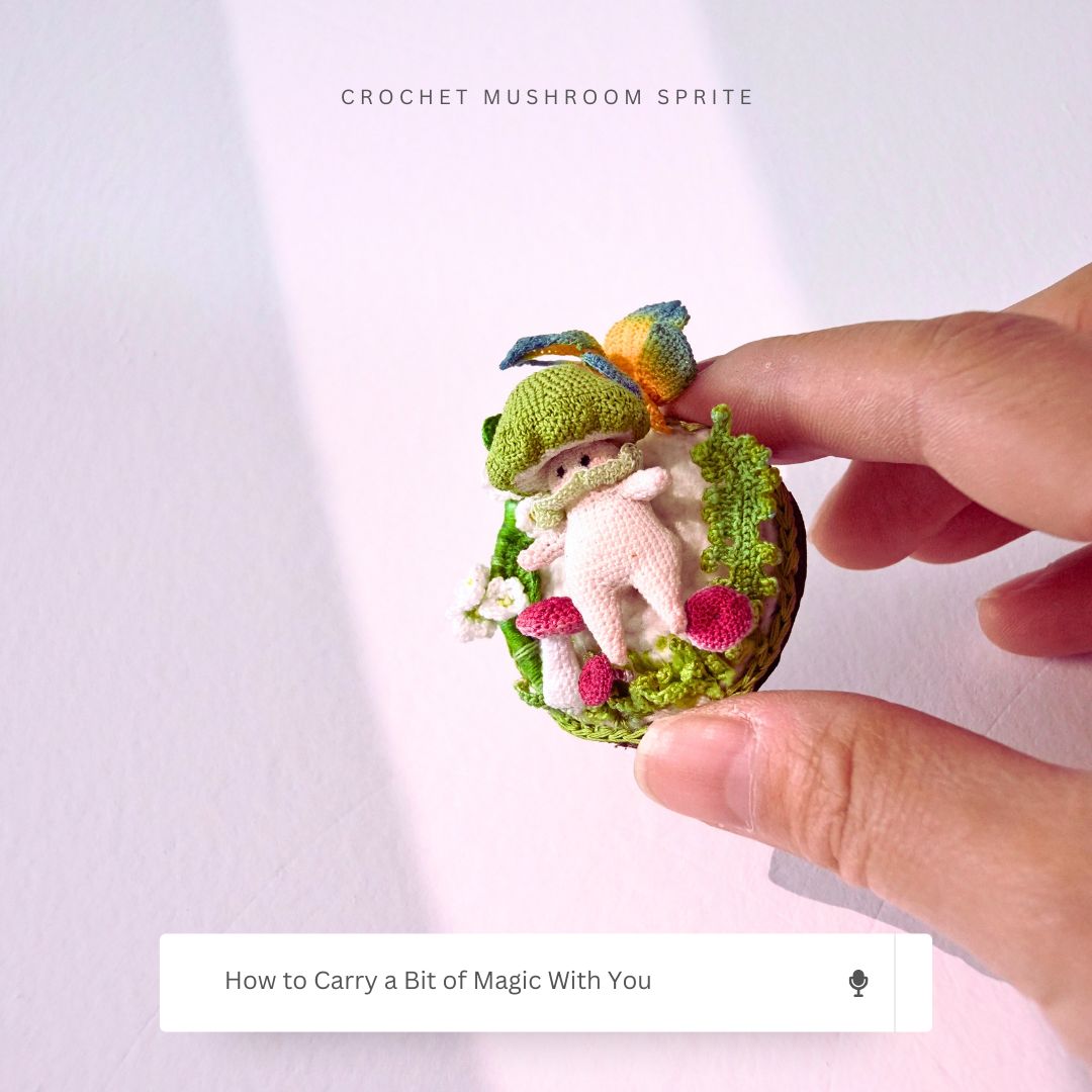 This forest-inspired mushroom sprite brooch is delicately handcrafted using fine lace thread and finished with a 14k gold-plated pin. Lightweight yet detailed, it's a whimsical accessory perfect for fairycore lovers, woodland aesthetics, or anyone who adores handmade fantasy pieces.